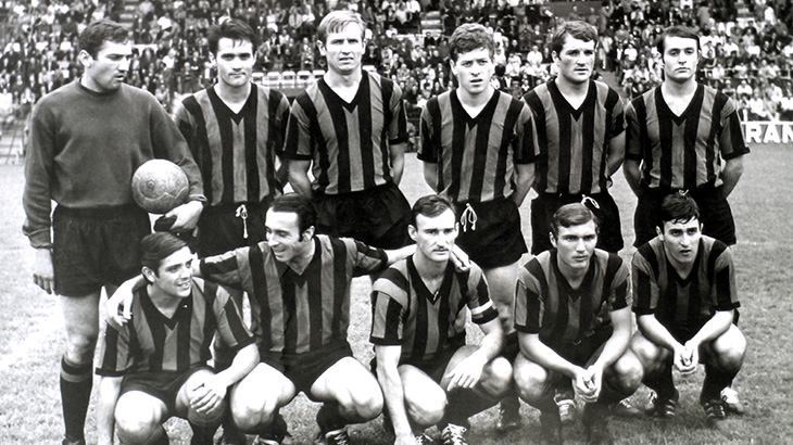 1965-66 : (1/16e de finale de Coupe de France à Marseille contre Nîmes) Debout : L.Ferry, Rodzik, G.Cauvin, Isnard, Serrus, Segarra