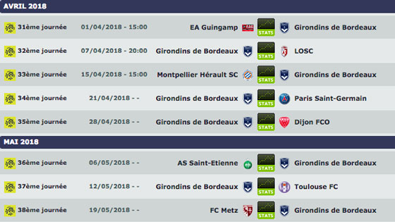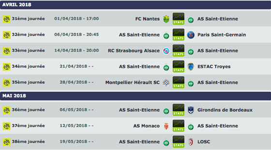 « Les Verts ont une carte à jouer mais personnellement, je pense que ce sera compliqué pour eux car leur programme est beaucoup plus difficile que ceux de leurs adversaires directs (voir ci-dessous). Pour l’Europe, je vois bien Rennes – qui possède un petit avantage psychologique et comptable sur ses adversaires -, même si ce n’est pas l’équipe que je préfère. Les résultats sont bons, Lamouchi fait du beau travail et, grâce à Khazri, ils restent en haut. Au niveau talent, ce n’est pas l’équipe la plus forte, mais elle va être dure à déloger. Nice a également sa carte à jouer. Le Nice - Rennes, dans deux semaines, va être décisif, parce que si le Gym s'impose, ça peut libérer des chances pour les autres... »