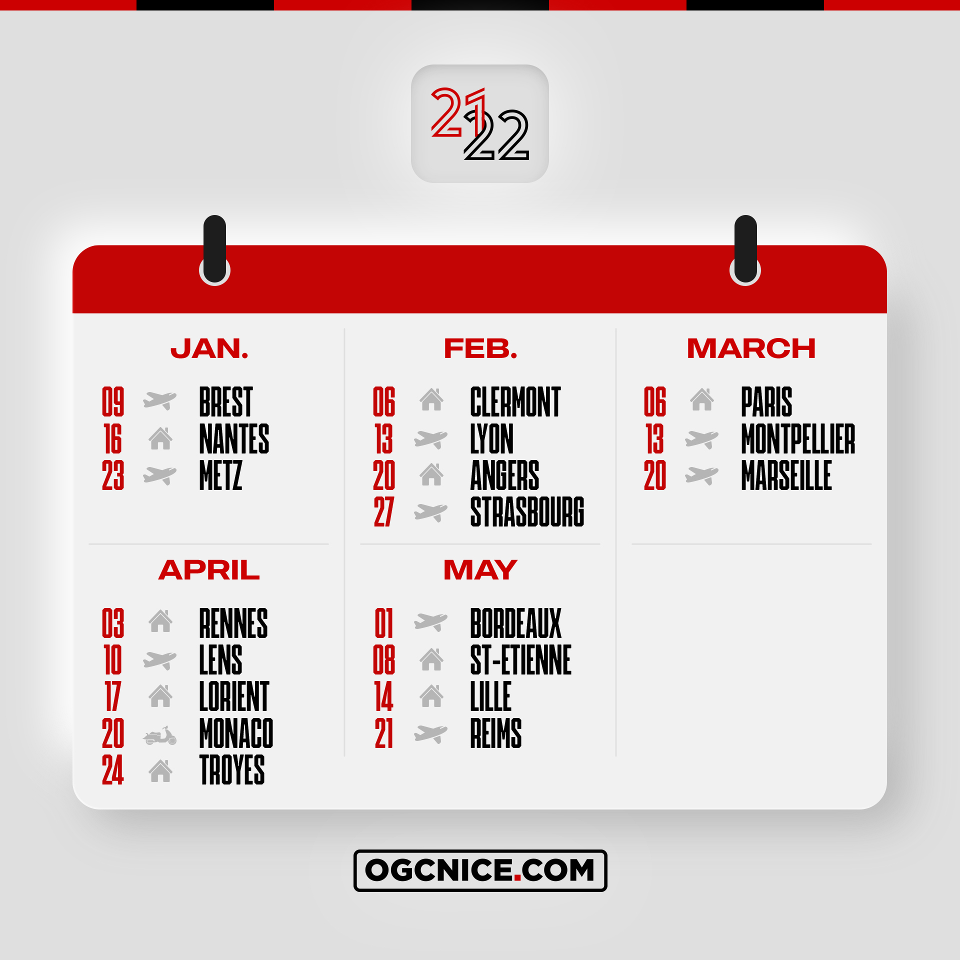 The first double of the second half of the season will take place in March when Nice will travel consecutively to Montpellier (MD28 - 13/03) and Marseille (MD29 - 20/03).