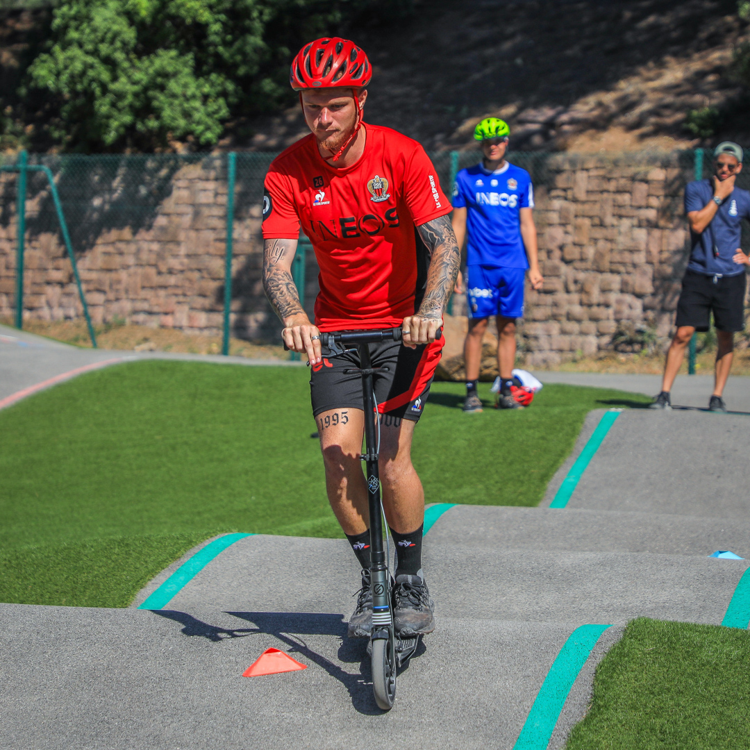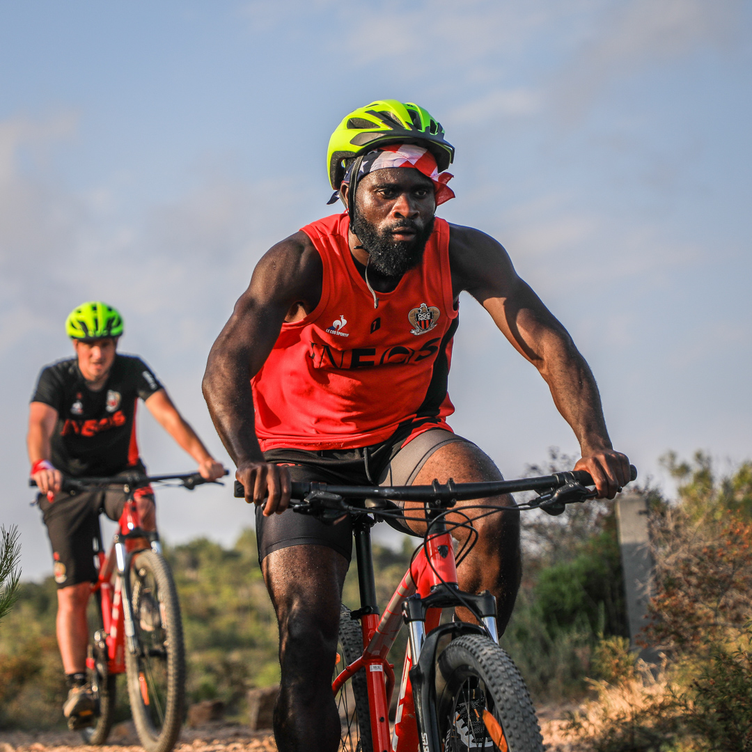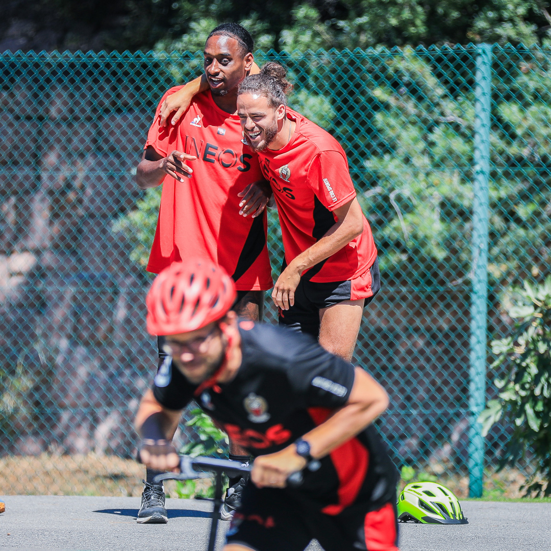 The teams, drawn by lots, mixed players and staff members. They first went head-to-head in a ‘bike and run biathlon’ with precision shots followed by 2.5km laps, either on a bike or on foot.
