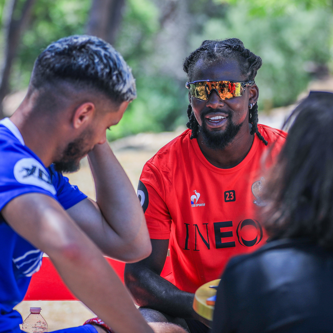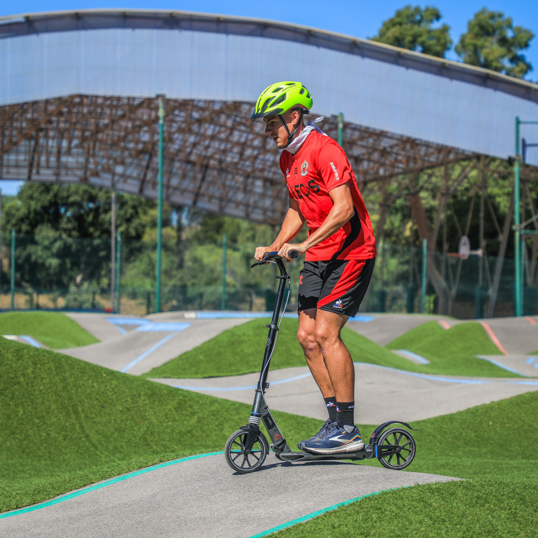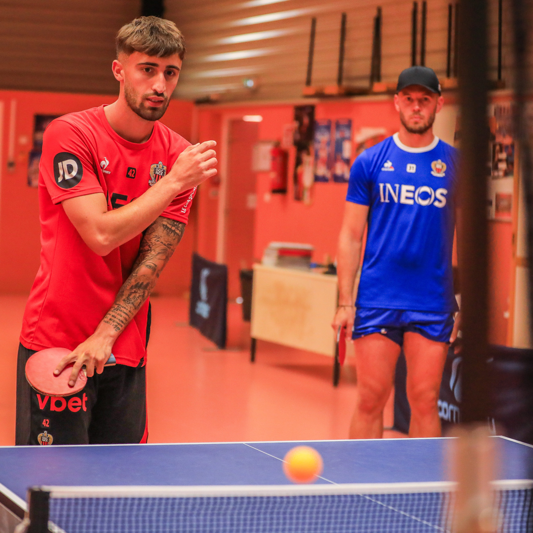 The teams, drawn by lots, mixed players and staff members. They first went head-to-head in a ‘bike and run biathlon’ with precision shots followed by 2.5km laps, either on a bike or on foot.