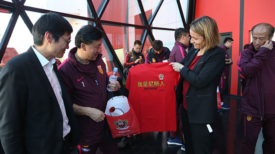 Virginie Rossetti (Brand and Communication Director for Le Gym), and Claude Li (Assistant Managing Director) presented a souvenir shirt and gifts to Yaodong Cheng, the Chinese U19s coach.