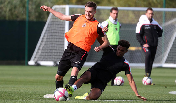 After a good warm-up that was followed by keep-ball, the Red and Black squad was split into two groups. The first worked on moving the ball with rhythm, before some finishing work in front of goal; whilst the second took part in a drill that combined finishing, acceleration and technical play with the ball.