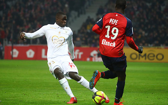 Suffocated. The Rouge et Noir, who were playing in white, didn’t have even one second’s respite at the Stade Pierre-Mauroy. There was to be no sizing up period against a LOSC side who attacked the match with their foot firmly on the accelerator. Under tremendous pressure, the Aiglons lost ball after ball, like for Leão’s opener when Atal was stopped by Koné 80m from his goal, leaving acres in behind him for Ikoné. The same cause and same result for the second goal, when Sarr lost the ball on the other side of the pitch, and a sprint from another member of the famous Lille offensive trio "BIP-BIP", Nicolas Pepe, who couldn’t have done better with his perfectly curled left-footed effort that found the back of Benitez’s net. LOSC’s top scorer had already shown his talent just before, with some excellent work in the box that ended with a powerful strike crashing against the bar (14').