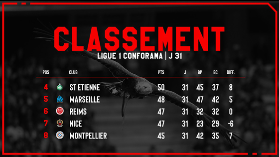 A good afternoon for Le Gym as it reigned victorious over Montpellier - a direct competitor for a European place - thanks to a goal from Dante (1-0) and continue to make the Allianz Riviera its fortress. After beating their opponent, Les Aiglons continue their run and keep their ambition alive for the final games of the season.