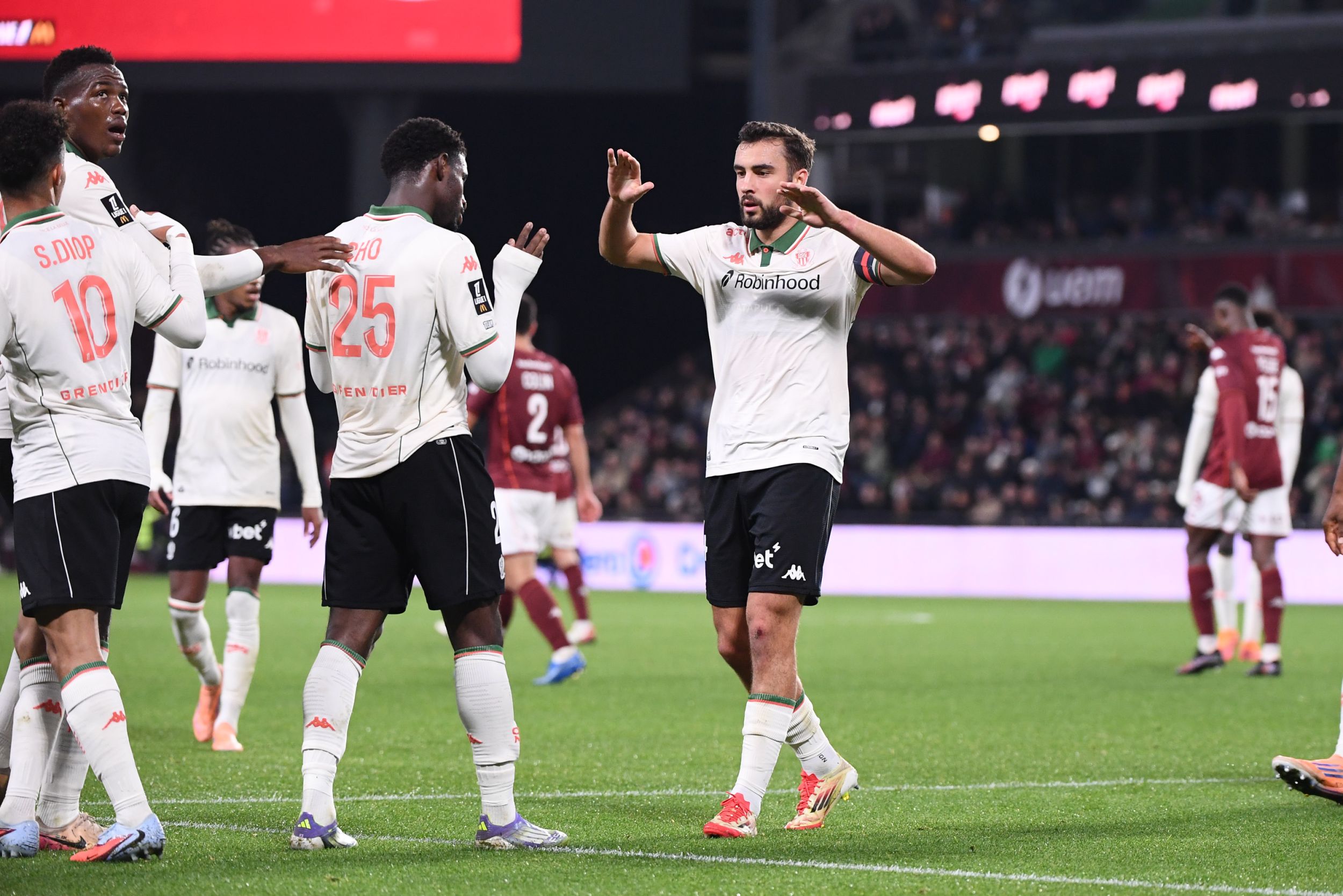 Despite a tough start against the side from Lorraine that was stronger in duels and dangerous on the counter-attack, as shown by Cheikh Sabaly’s missed chance following a high recovery by Habib Diallo (9’), the Aiglons still managed to open the scoring late in the first half. Although they had struggled until then to build their play, the visitors put together a superb move starting from Yehvann Diouf, continuing through Sofiane Diop, and finished off with a fine curling shot from Mohamed-Ali Cho after an assist from Charles Vanhoutte, the captain for the evening (0–1, 35’).