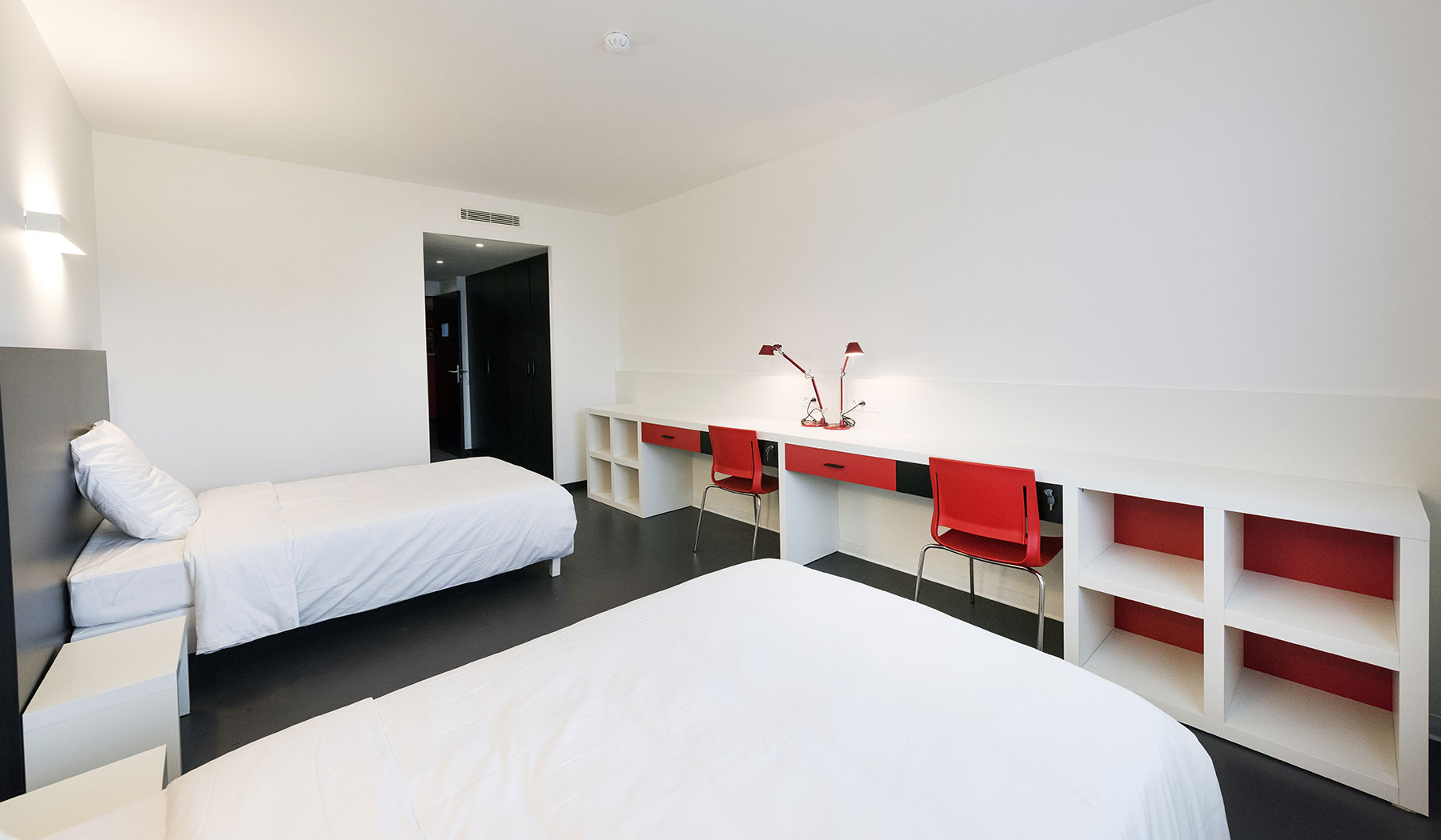 Some 110m long, the building has four floors that hold the dressing rooms, gym, recovery areas etc. for the players and technical staff, offices, meeting rooms, a canteen and press conference room, as well as rooms for the first-team squad and youth academy players.