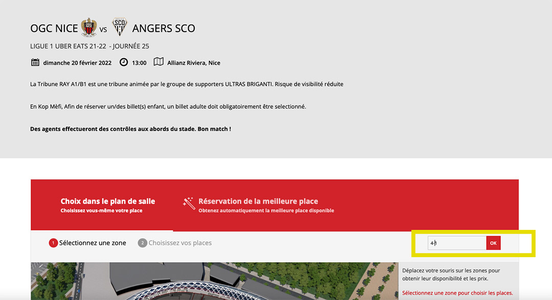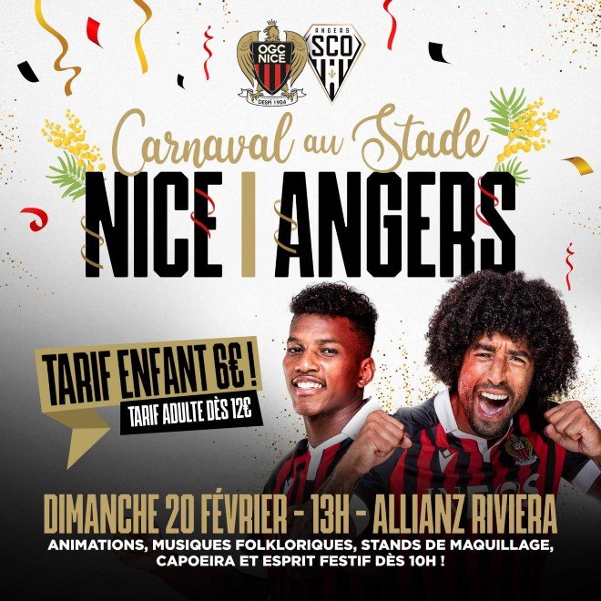 Pour prolonger les célébrations du derby, profitez d'une réduction exceptionnelle de 41% sur l'achat de vos billets pour le match Nice - Angers grâce au 4-1 infligé par les Aiglons. Pour cela, saisissez le code promotionnel "4-1" (au moment de sélectionner vos places) et bénéficiez de tarifs cassés pour venir fêter le carnaval au stade. Faîtes vite, l'offre expire ce vendredi à midi !