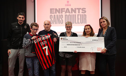 Bénéficiaire du programme Enfants Sans Douleur de l'OGC Nice, doyen des engagements citoyens du Gym, lors de la saison 2019/2020, l'association Enzo 06 doit fermer ses portes. A cette occasion, elle a remis un chèque de 3000 euros au Fonds de Dotation pour soutenir d'autres actions du Gym, en faveur de l'Enfance.