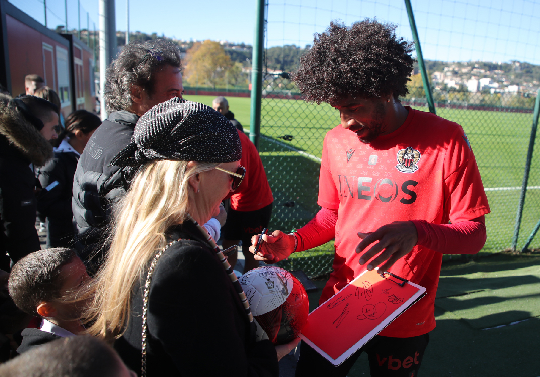 Les Aiglons se sont présentés ce mercredi matin devant leurs supporters. Pendant plus d'une heure, ils ont travaillé, deux jours après leur retour sur le terrain sous les yeux de fans rouge et noir ravis. Avant de terminer par une séance de dédicaces et d'échanges très appréciée à voir les sourires de chacun. Entre photos et vidéos, dont une flopée de messages d'anniversaire récoltés par une maman pour son fils, les Aiglons ont pris la pose pour leurs supporters. Un bon moyen pour tous de prendre des forces avant les retrouvailles à l'Allianz Riviera face à l'Atalanta, vendredi 16 décembre à 20h.