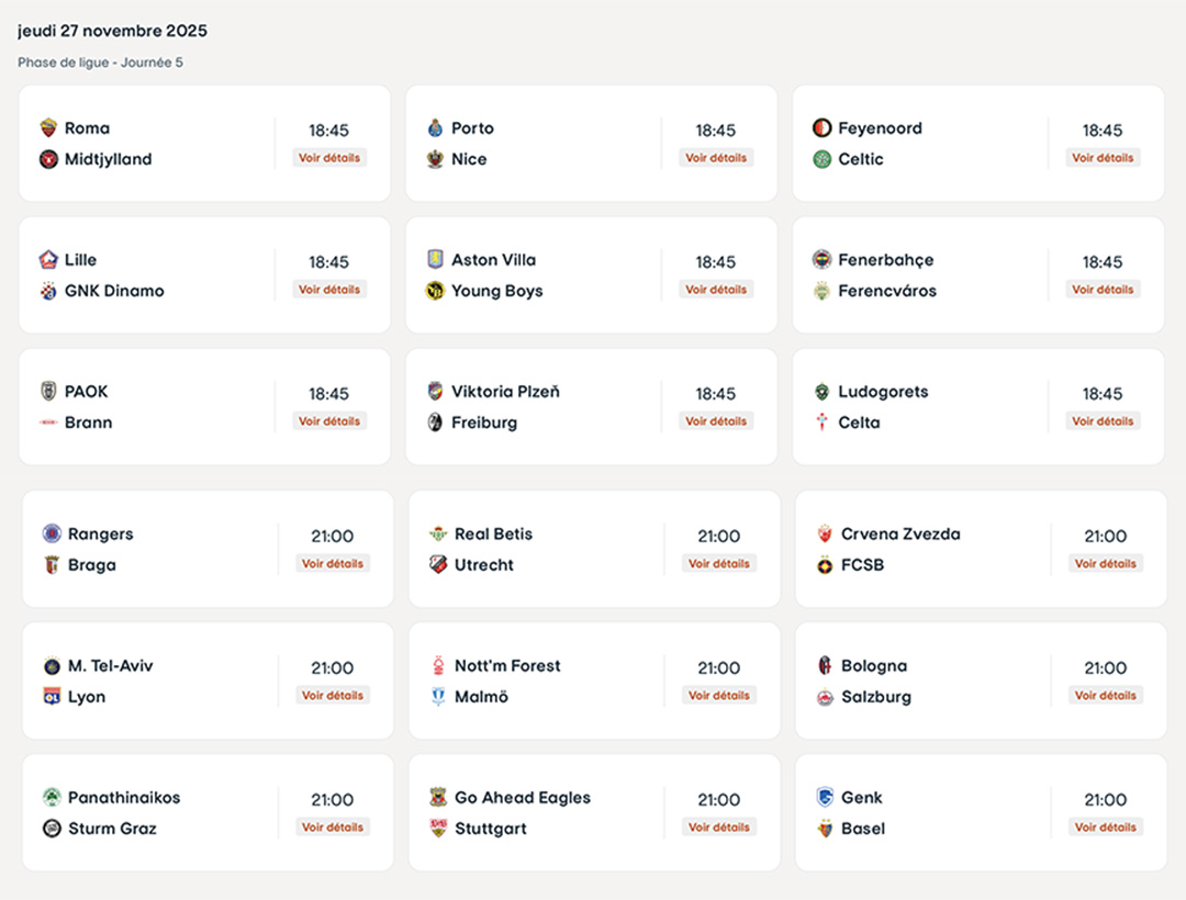 Le programme de la 5ème journée d'Europa League