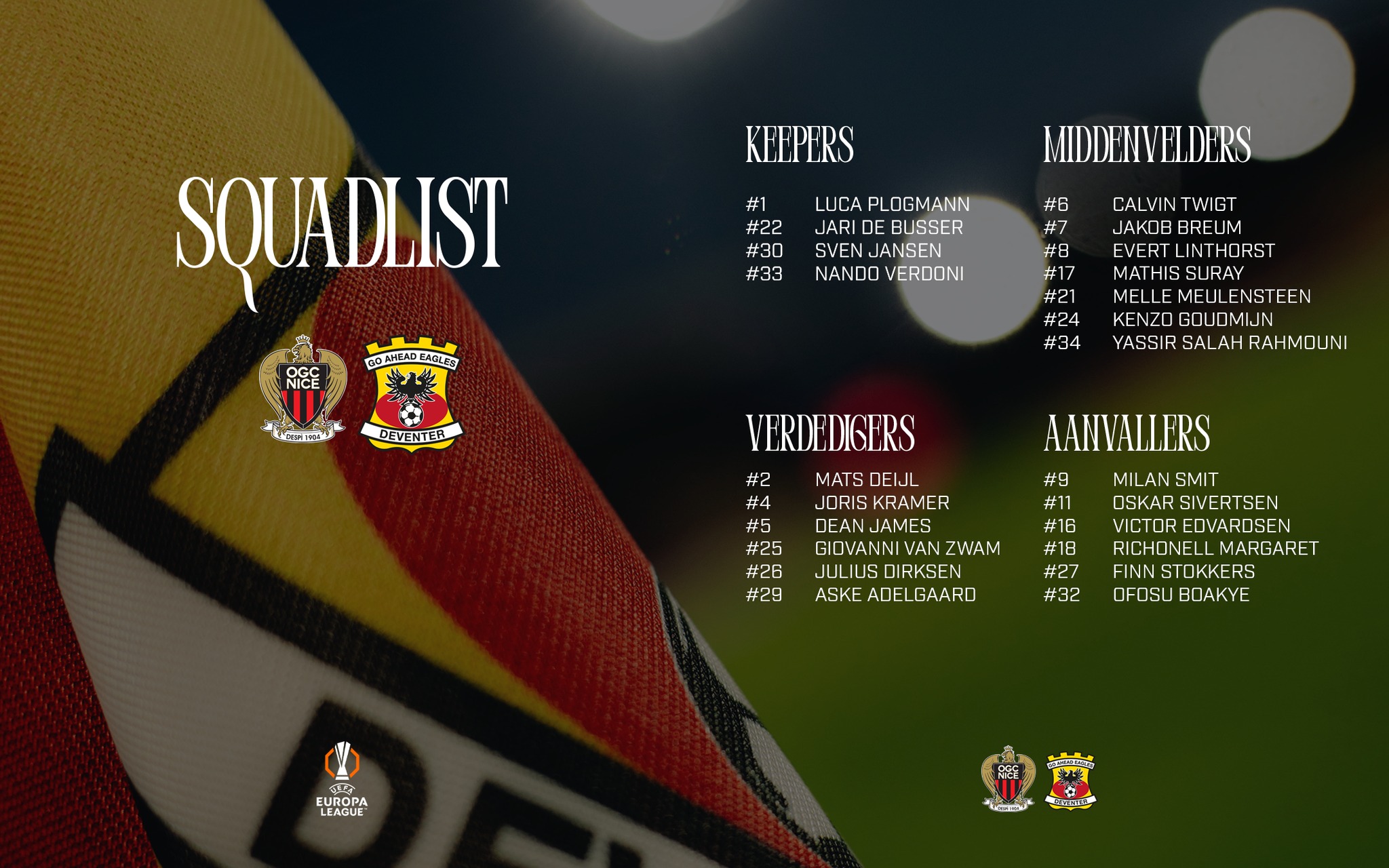 Voici tout ce qu'il faut savoir avant Nice - Go Ahead Eagles, qui se disputera ce jeudi à l'occasion de la 7ème journée d'Europa League (coup d'envoi à 21h).