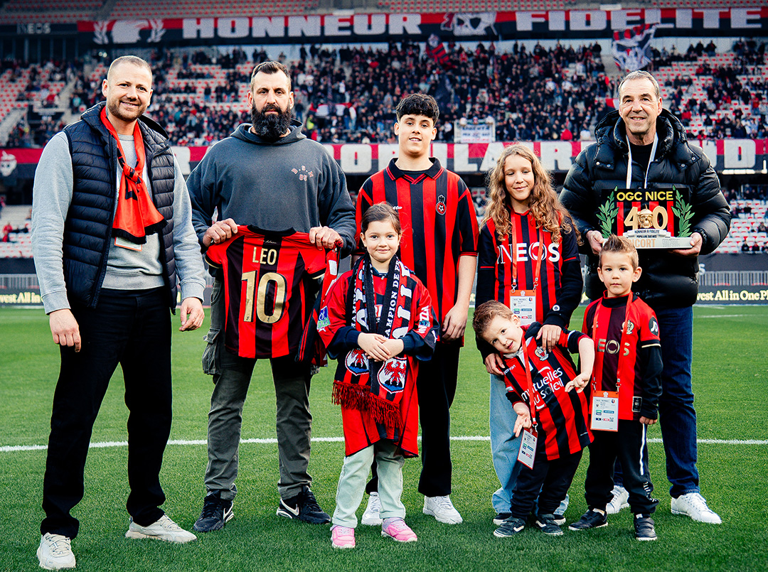 « Je suis très touché par votre geste et je vous félicite encore ». Tels ont été les mots de Roger Ricort, choisi par la Populaire et le Gym pour être mis à l’honneur dans le cadre des festivités des 40 ans, au moment de pénétrer sur la pelouse de l’Allianz Riviera en avant-match. Un honneur partagé en famille par celui qui fut tour à tour un ancien joueur (de 1987 à 1990) et ancien Directeur Sportif du club (2002 à 2009), qui reste profondément lié à Nice et à l’institution rouge et noir.