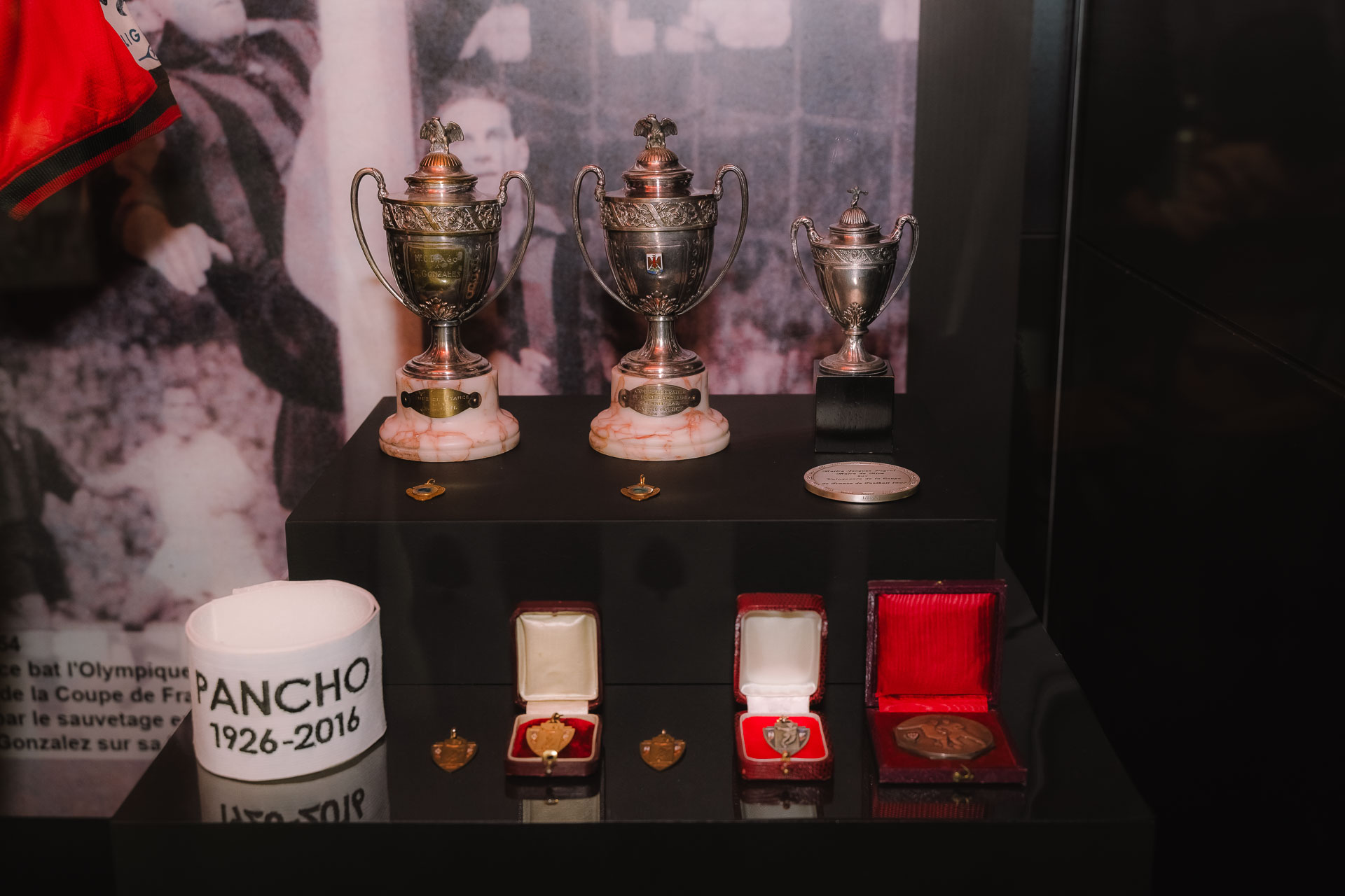 Enfin jusqu’en avril, les supporters rouge et noir en visite au Café des Aiglons peuvent profiter d’une exposition éphémère dédiée à Pancho Gonzalez. Des objets prêtés par sa famille permettent de replonger dans le parcours du « capitaine de l’histoire », homme le plus titré du Club (3 titres de champion et 2 Coupes de France en tant que joueur, 1 Coupe de France dans le staff), disparu en 2016.