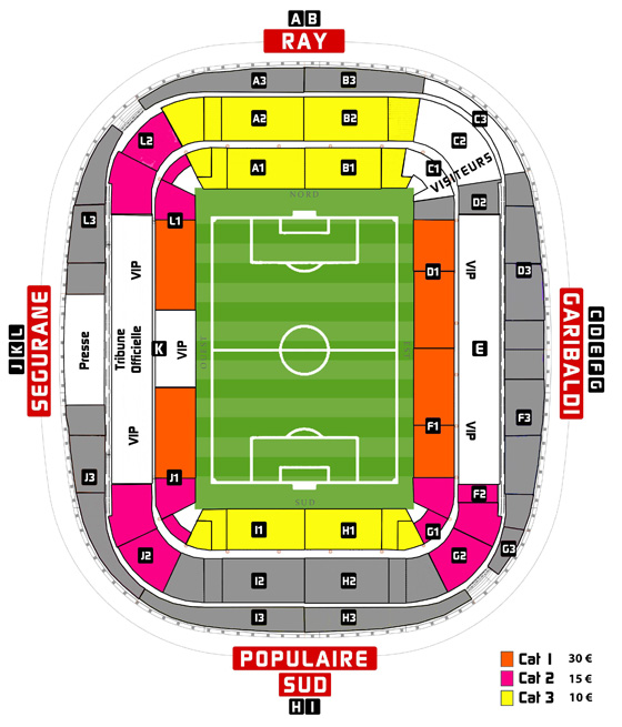 Billetterie Principale de l’Allianz Riviera, jour du match à partir de 10h.
