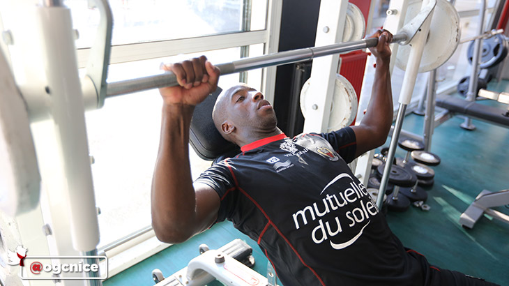 La troisième recrue niçoise a pris part à un footing avant de rejoindre la salle de musculation. Travail de gainage, abdominaux puis musculation du haut du corps au programme. Un premier jour (déjà) studieux.