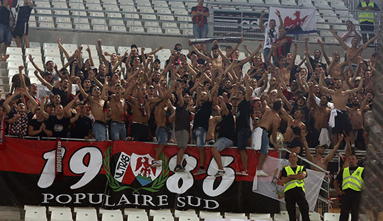Une fois plus, les supporters niçois se sont montrés exemplaires. Malgré la déception de la défaite et les 4 buts encaissés, chants et encouragements sont descendus du parcage visiteurs du Stade Vélodrome ce soir.