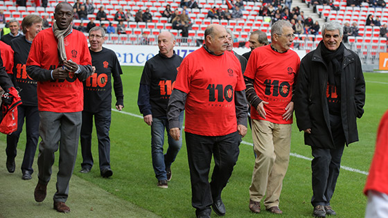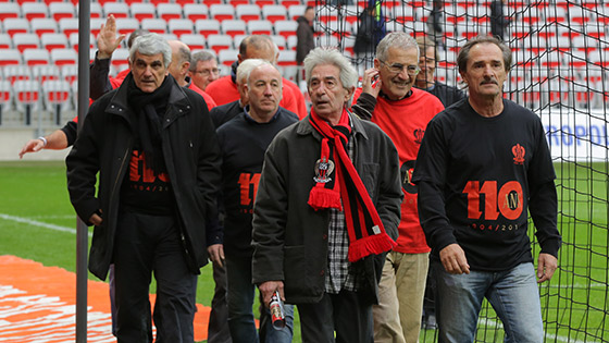 « Ce club, c'est votre club. Il faut que vous continuiez à participer à son Histoire. » Ces mots appartiennent à Jean-Pierre Rivère. Ils ont été adressés aux joueurs ayant bercé sa jeunesse et nourri sa passion : les glorieux anciens des années 70. « La fabuleuse » décennie comme le résume parfaitement le titre de l'ouvrage de Bertrand Tremel qui retrace les exploits de ces géants niçois (*). Des géants qui, dans le cadre des 110 ans du club, ont été mis à l'honneur durant toute la journée en marge de la rencontre entre le Gym et St Etienne. Une affiche qui possède une résonance toute particulière pour bon nombre d'entre eux...