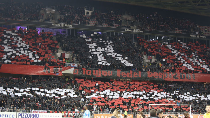 L’Allianz Riviera a tout juste un peu plus d’un an. Avec les venues et déconvenues de Marseille, elle se construit peu à peu son histoire. Et son attachement avec ses fervents occupants. Ils étaient 25 407 vendredi soir et le chœur nissart a rapidement apposé le cachet derby sur la rencontre. Deux « kops » archi pleins. Et des tifos côté ARN comme Pop Sud dont les photos feront bientôt de bien jolis fonds d’écran ou des statuts facebook emplis de fierté.