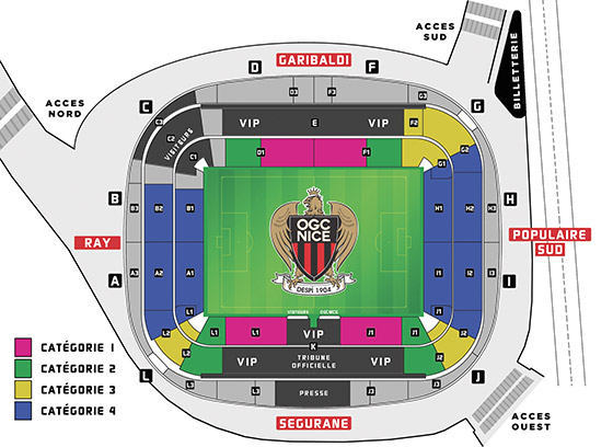 3- Cliquez une zone du stade de même catégorie que votre abonnement (1, 2, 3, ou 4). Vous pouvez ainsi offrir une invitation en Ray si vous êtes abonné en Sud par exemple ou prendre une invitation proche de votre abonnement. Puis selectionnez votre place sur le plan et cliquez sur INVITATION ABONNE (à droite)