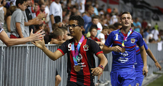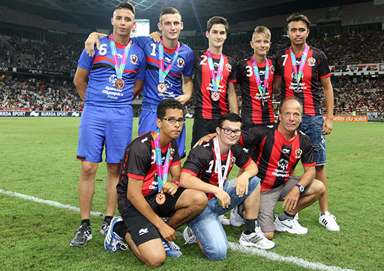 Partis vivre « la grande aventure » aux Etats-Unis, à l'occasion des Jeux Mondiaux Spéciaux (les Jeux Olympiques des athlètes mentalement déficients), l'équipe " Special OGC Nice " a une nouvelle fois fait lever l'Allianz Riviera. Après avoir participé avec ferveur au clapping du début de l'après-midi, cette formation, issue d'un partenariat entre le Gym et Special Olympics, a procédé à un nouveau tour d'honneur, à la mi-temps du match face à Monaco. Deux gros mois après avoir fait le tour du stade face à Lens, et après avoir remporté une médaille de bronze à Los Angeles, ces jeunes athlètes ont donc mis un superbe point d'honneur à une grande aventure.