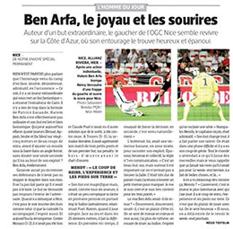 "Ben Arfa, le joyau et les sourires". A lui seul le titre de L'Equipe résume bien la rencontre d'hier soir. Un "chef-d'oeuvre" comme indiqué dans le quotidien Aujourd'hui en France qui "a rendu dingue l'Allianz Riviera" enchérie Vincent Menichni dans son compte rendu pour Nice-Matin. Le meneur de jeu, qui a ébloui la rencontre de sa classe, a reçu les éloges des adversaires, de ses coéquipiers et de la presse, tous sont unanimes. Un "ovni" qui peut à lui seul "effacer quatre joueurs sur 25 mètres en deux coups de reins avant d'ajuster un missile sous la barre dans un angle fermé" écrit le journaliste Régis Testelin dans l'Equipe du jour. Magnifique, "un chef-d'oeuvre à voir et à revoir. Merci Hatem" (Nice-Matin).