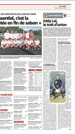 Et tout au long de l'année, les protagonistes les plus méritants sont mis en lumière Nice-Matin chaque mardi. « Un éducateur est un 2e parent » raconte ainsi Eddy Laï, dans l'édition de ce 2 février. Coach des U17 honneur du Cercle Artistique et Sportif des Eaux, président du club, l'homme de 42 ans profite de la tribune pour expliquer sa vision du rôle d'éducateur. Sa pédagogie. Son sens du respect, l'importance du comportement extra-sportif dans le quotidien de ses petits...