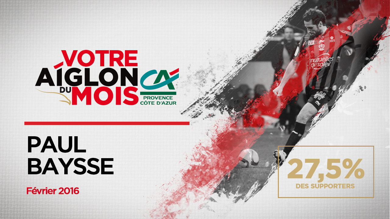 Désigné Aiglon du match à Bordeaux sur ses terres natales, Paul Baysse a cimenté la défense niçoise en février. Un taulier apprécié. Et ce n’est pas sa sévère exclusion contre Bastia la semaine passée qui viendra entamer sa popularité. Lancée le lendemain du derby, l’élection du joueur du mois, réalisée en partenariat avec le Crédit Agricole Provence Côte d’Azur a sacré l’ex-Stéphanois.