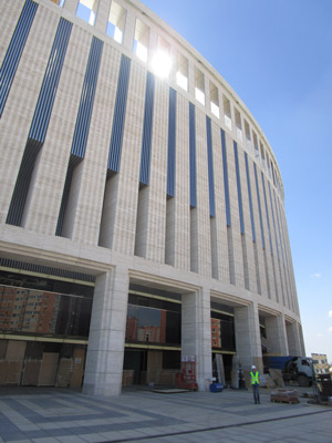 Enceinte d'inspiration Colisée moderne, pierre naturelle directement venue d'Italie, écran géant tout autour du dernier anneau... Que de beaux matériaux et de très belles installations à l'intérieur pour accueillir les sportifs.