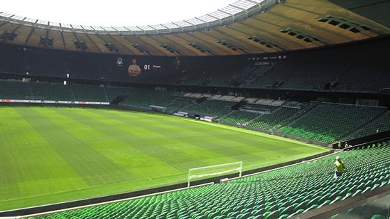 Il est partagé par deux clubs. Le FCK est pressé d'en sortir très prochainement pour entrer dans son vrai stade à lui, dont il sera 100% propriétaire (photo ci-dessous).
