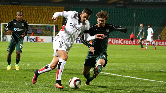 Buts : Balotelli (42e), Cyprien (71e) pour Nice ; Smolov (29e), Joaozinho (33e, 65e sp), Ari (86e, 90+3) pour Krasnodar.