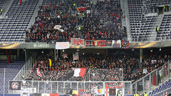 Après deux défaites en autant de matchs d'Europa League, le Gym se déplaçait à Salzbourg pour une rencontre capitale. Partis la veille en bus, 1260 fans niçois se déplacèrent en Autriche. Après avoir investi dans une excellente ambiance les rues et cafés de la ville, les Niçois se rendirent à la Red Bull Arena pour pousser les Aiglons vers la victoire. Comme à la maison, puisque plus d'un supporter sur dix parlait Nissart ce soir là. Avec un tel soutien, impossible pour les coéquipiers d'Alassane Plea de revenir bredouilles : grâce à un nouveau but de leur attaquant, ils l'emportèrent sur la plus petite des marges, pour le plus grand plaisir des ultras (0-1).