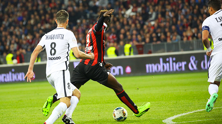 Un petit contrôle pour se mettre dans le sens du but. Un jeu de corps pour éliminer ses compatriotes Marco Verratti et Thiago Motta. Et une frappe chirurgicale, du gauche, pour conclure. On jouait la 26e, et c’est le moment qu'a choisi Mario Balotelli pour faire lever l'Allianz Riviera. Une habitude, puisque l’international italien a marqué lors de 9 de ses 10 titularisations à la maison en Ligue 1 (12 buts), seul Lyon lui ayant résisté.