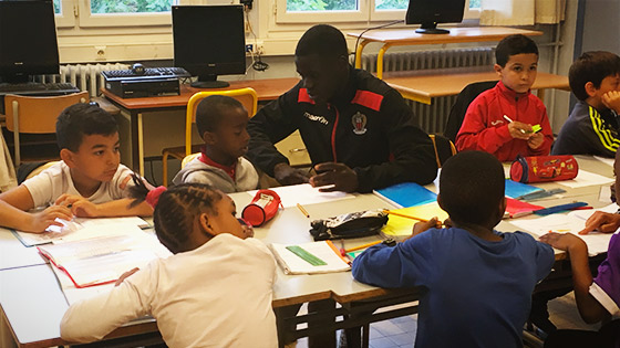 Géométrie, logique, lecture, le défenseur des Aiglons a pu vérifier que les souvenirs de ses cours, pas si lointain, étaient toujours présents et partager ses connaissances avec les écoliers. Ces derniers, impressionnés et honorés de voir l’un des modèles de leur quartier être aussi proche et accessible, ont fait preuve de beaucoup de sérieux et d’application tout au long de la séance.