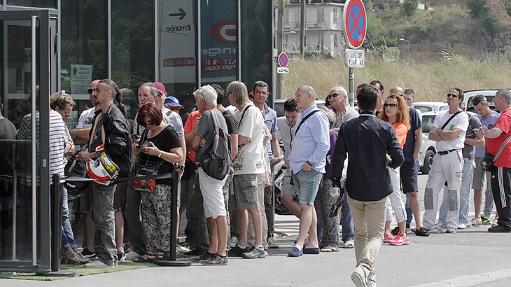 Il y avait foule ce vendredi aux abords de l'Allianz Riviera. Au lendemain du lancement des abonnements en ligne, la billetterie du stade ouvrait à son tour ses portes aux supporters niçois, à partir de 10h.
