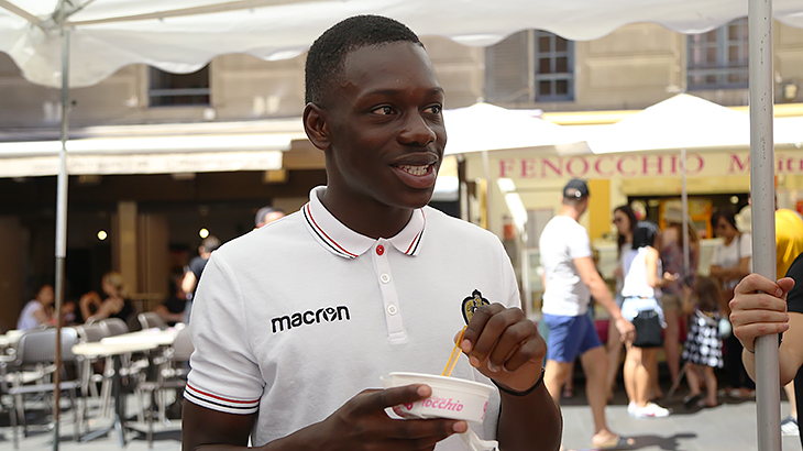 Accompagnés par les premiers rayons de soleil de la journée, les Aiglons se sont rendus Place Rossetti à 14h. Attablés sur la terrasse du célèbre glacier Fenocchio, les 3 nouveaux Aiglons ont multiplié les photos et autographes. Morceaux de papier, cartes, maillots, et même coques de téléphone y sont passés.