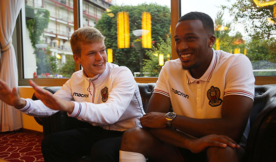 La puissance et l'impact. L'oeil et les jambes. Habitués des lieux, Alassane Plea et Vincent Koziello montent en puissance au bord du Lac Léman, dans le Domaine de Divonne. Complices et compagnons, l'attaquant (24 ans) et le milieu (21 ans) ont pour vertu commune la sincérité. Celle qui s'habille d'espièglerie au moment de dresser le portait... du camarade. Travail minutieusement effectué dans la salle de vie du Q.G. rouge et noir, dimanche soir, à l'issue du dîner. A l'heure du « Loup », du ping-pong et du repos. Compagnons de chambrée.
