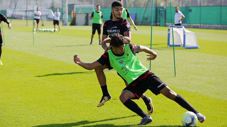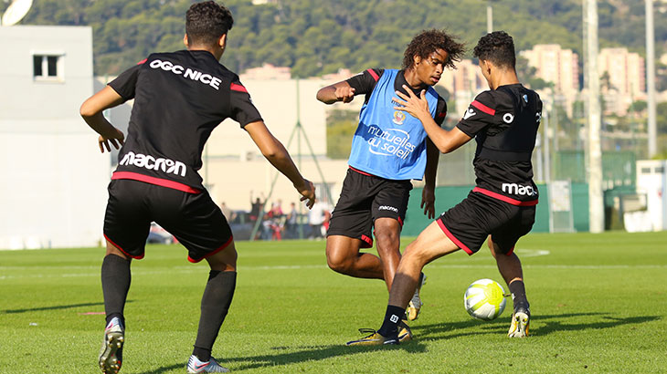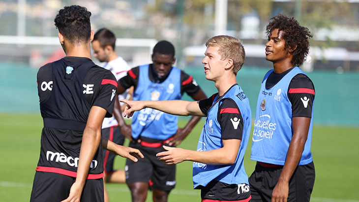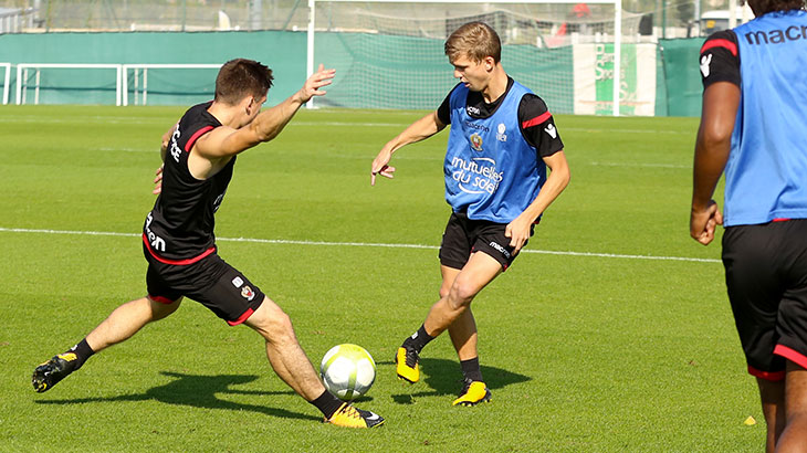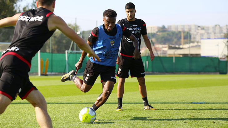Après avoir répété leurs gammes, les Niçois ont enchaîné des exercices sur terrain réduit. Ils ont ensuite achevé leur séance par des jeux de conservation avec des petits buts.