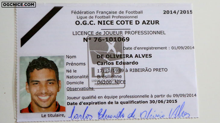 Le milieu offensif brésilien Carlos Eduardo a disputé 30 matchs de L1, inscrit 10 buts (dont un quintuplé mémorable contre Guingamp) et délivré 4 passes décisives. Voici son unique licence au club, lors de la saison 2014-15.