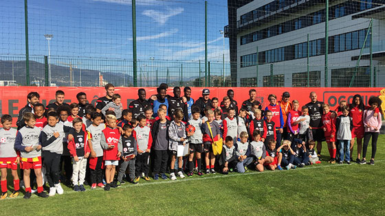 Avant de repartir chez eux des étoiles pleins les yeux, les apprentis footballeurs ont immortalisé l’instant, avec le drapeau de l’OGC Nice entre les mains.