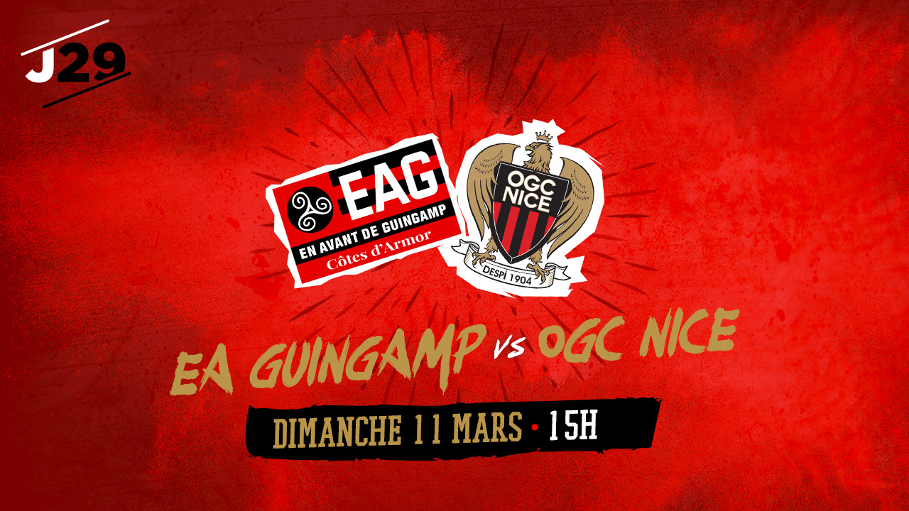 La LFP a communiqué la programmation tv de la 29e journée de Ligue 1 Conforama. Les Aiglons se déplaceront à Guingamp le dimanche 11 mars. Coup d'envoi à 15h. La rencontre sera diffusée en direct sur beIN Sports 1.