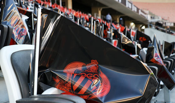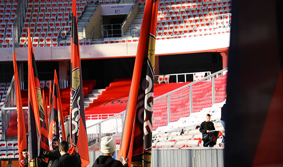 Les supporters, attendus en nombre, ont installé des drapeaux sur tous les sièges de l'enceinte, pour un tifo qui devrait être à la hauteur de l'évènement.