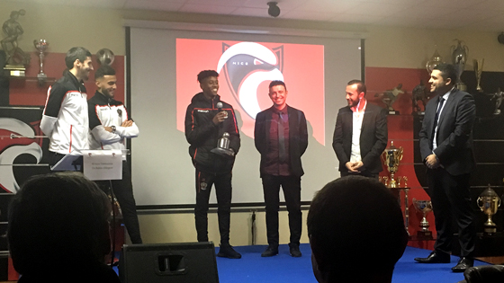« C’est un honneur pour moi de revenir au Cavigal avec le survêtement du Gym pour recevoir cette distinction. Depuis tout petit, le Cavigal a toujours cru en moi, comme maintenant l’OGC Nice… J’espère rendre cette confiance sur le terrain. Je me suis bien adapté à mon nouvel environnement et je prends tous les conseils qu’on me donne ».