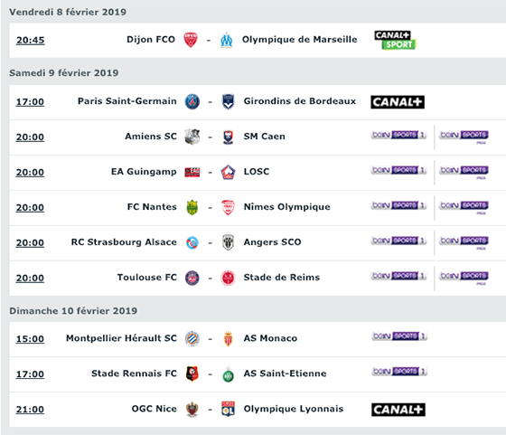 Canal + ayant décidé de mettre à l'affiche la rencontre entre Nice et Lyon, celle-ci se jouera dimanche 10 février, à 21h.