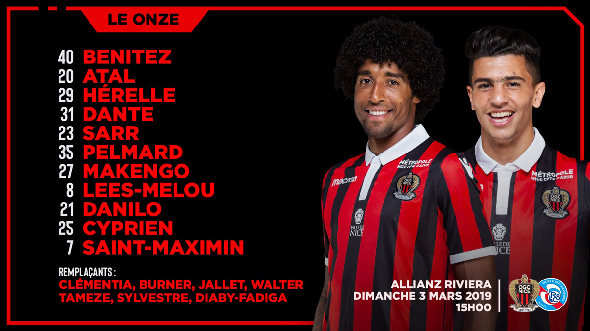 Benitez, Atal, Hérelle, Dante (cap), Sarr, Pelmard, Cyprien, Lees-Melou, Danilo, Makengo, Saint-Maximin.