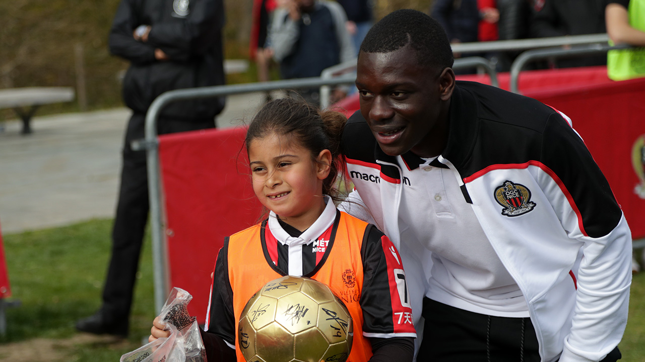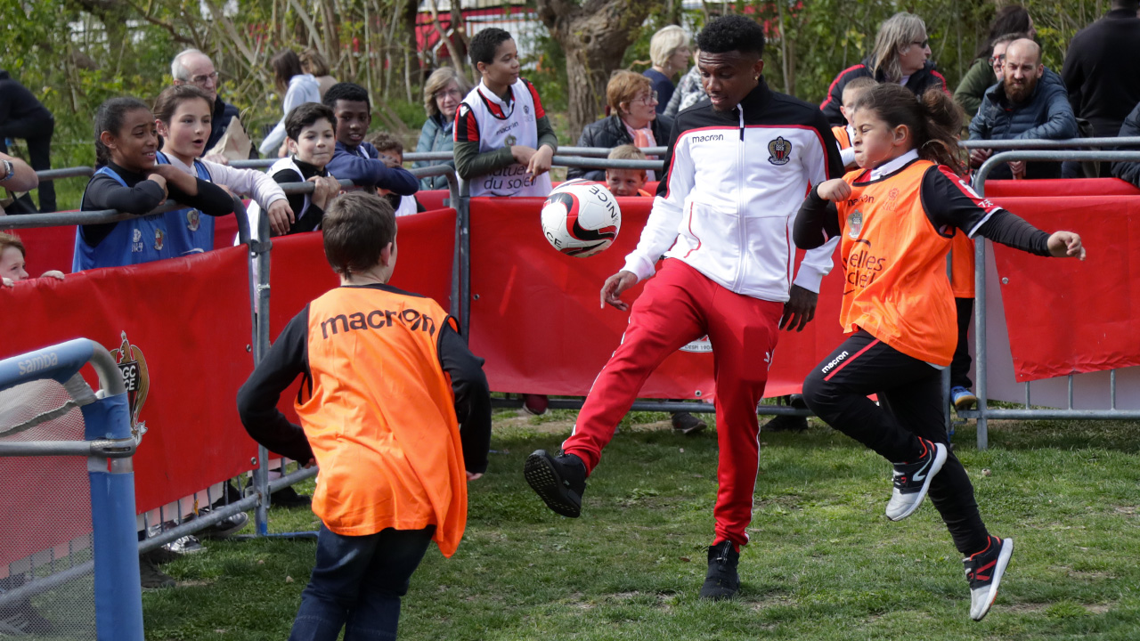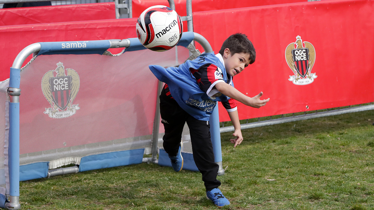 Jusqu’au bout, le ciel a été scruté. Les gros nuages ayant pointé leur nez juste avant le coup d’envoi ont fait craindre un report. Finalement, les nuages sont restés muets et, à 16h pile, le coup d’envoi a pu être donné dans une arène parfaite, en plein coeur de la capitale azuréenne, juste à côté du miroir d’eau. D’un côté, de petits supporters surchauffés. De l’autre, Patrick Burner et JV Makengo, en belle forme. « Les vacances viennent de commencer, il ne pleut pas et les petits peuvent jouer contre les pros : qu’est-ce que tu veux demander de plus ? », apprécie Roger, qui regarde son petit-fils César tenter un crochet sur le latéral niçois. « Avant la fin, c’est sûr qu’il va passer ! », renchérit le pichoun, tunique blanc et or sur le dos.