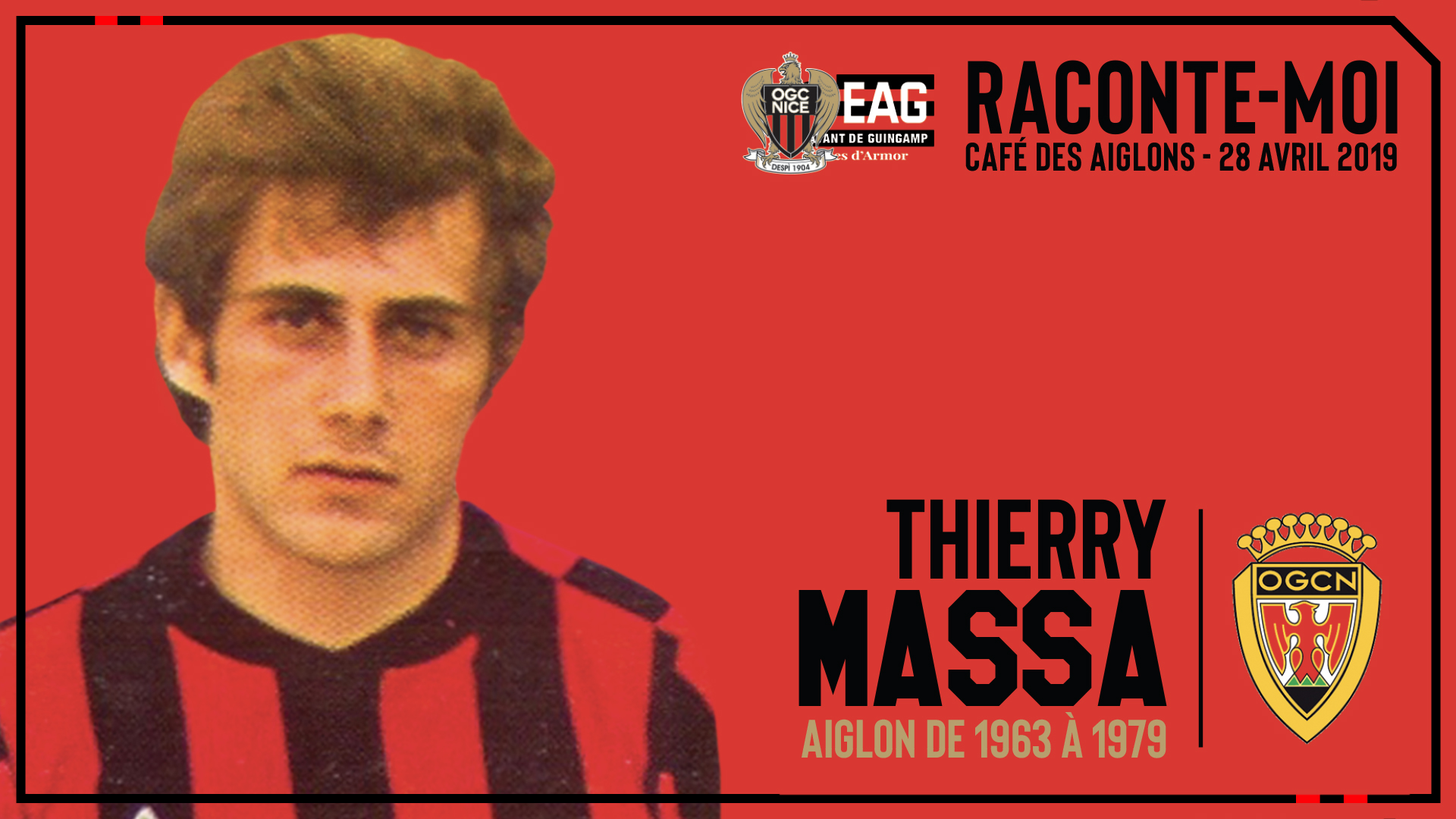 À partir de 13h30, ce dimanche, Thierry Massa racontera ses souvenirs devant les supporters réunis au Café des Aiglons. Puis, juste avant le coup d’envoi de Nice – Guingamp (15h), il héritera du trophée des anciens Aiglons devant le public de l’Allianz Riviera.