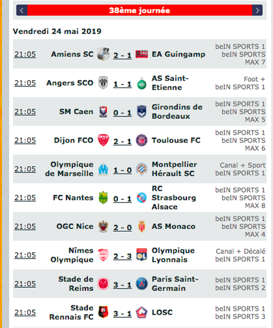 Les résultats de la 38e journée
