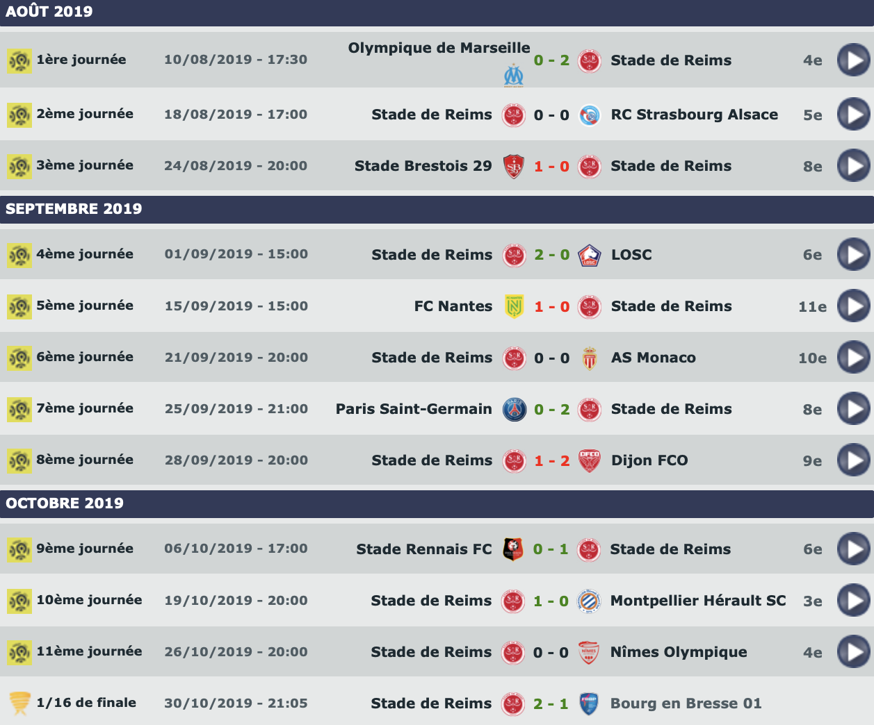 Le détail de la saison de Reims :