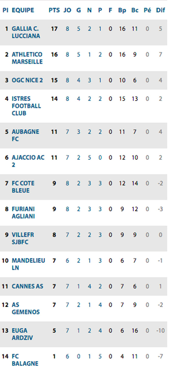 Avec 15 unités au compteur, le Gym se replace sur le podium, avec un point de retard sur son adversaire du jour, et deux sur le nouveau leader, Gallia Lucciana. Lors de la prochaine journée, la réserve affrontera un autre club des Bouches-du-Rhône : le Istres FC. Cette rencontre se jouera samedi 9 novembre à 18h.